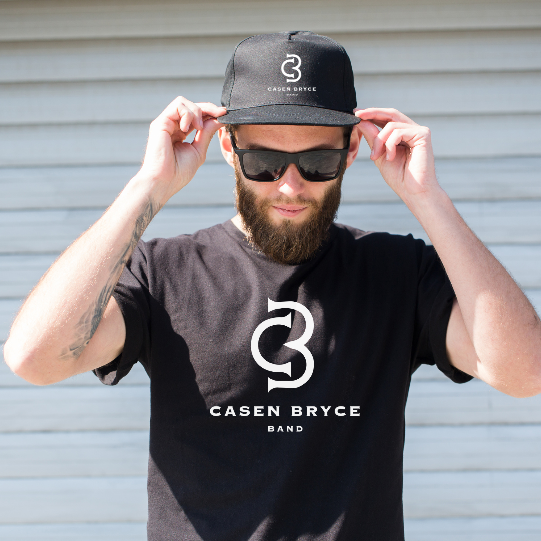 Design a bold, memorable logo for the newly formed Casen Bryce Band that incorporates the artist’s initials and reflects the band’s musical identity. The goal was to creatively blend the initials “C” and “B” with a guitar-inspired element, resulting in a mark that could work across merchandise, social media, and promotional materials.